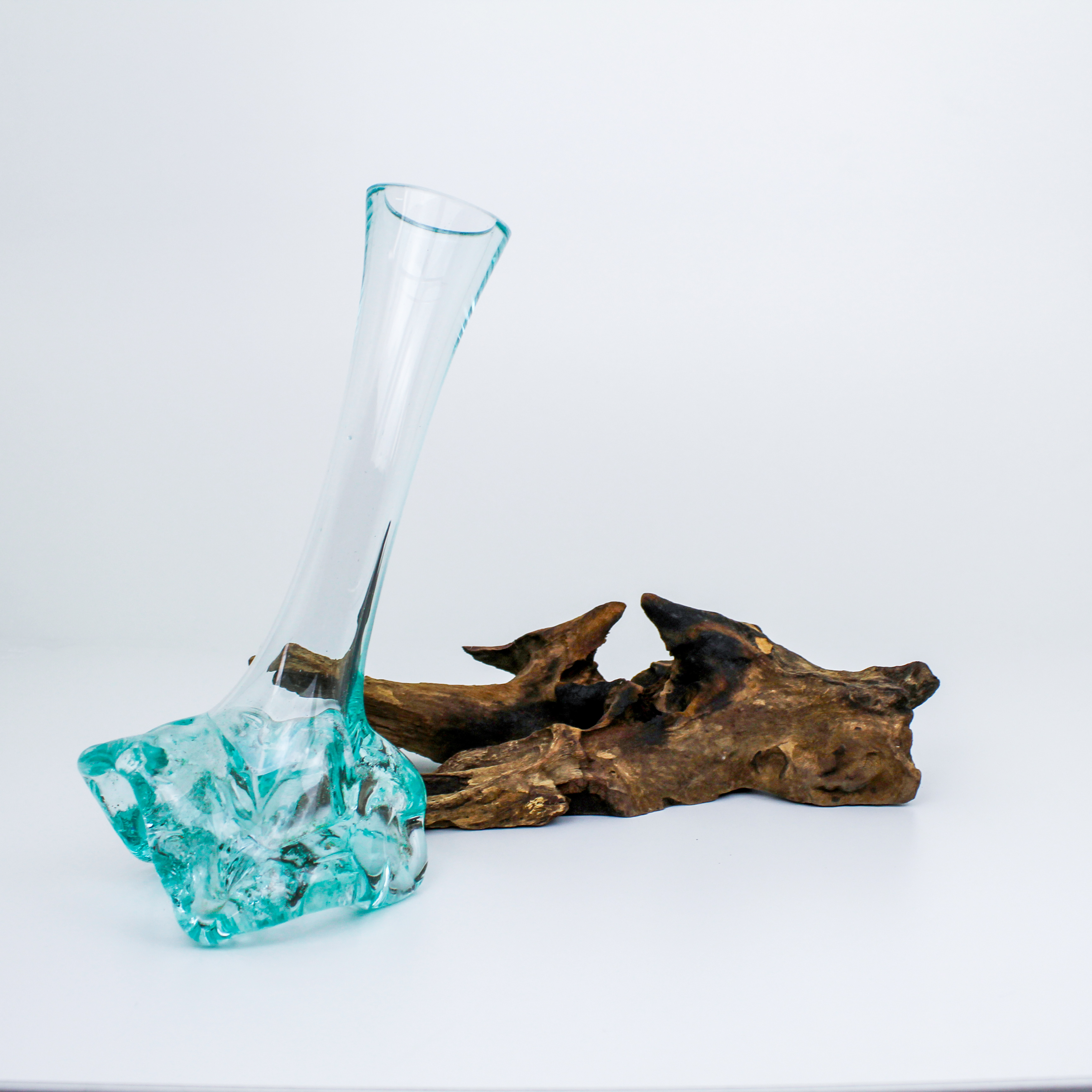 Mundgeblasenes Glas auf Wurzelholz - Ein Meisterwerk der Natur und HandwerkskunstUnser mundgeblasenes Glas auf Wurzelholz ist mehr als nur ein Dekorationsstück - es ist eine Hommage an die Einzigartigkeit der Natur und die Kunstfertigkeit erfahrener Handwerker. Dieses Kunstwerk verbindet die Schönheit von mundgeblasenem Glas mit der rustikalen Eleganz von Wurzelholz und wird im Handumdrehen zum Blickfang in Ihrem Zuhause.Produktmerkmale:Mundgeblasenes Glas: Jedes Stück Glas wird von erfahrenen Glasbläsern gefertigt und zeichnet sich durch seine individuelle Form und Textur aus. Dies verleiht jedem Exemplar einen einzigartigen Charakter.Wurzelholzsockel: Der Sockel besteht aus echtem Wurzelholz und unterstreicht die organische Schönheit des gesamten Kunstwerks. Die unverwechselbare Maserung und die warmen Holzfarben machen jeden Sockel zu einem Unikat.Maße variieren: Da sowohl das mundgeblasene Glas als auch das Wurzelholz ein Naturprodukt sind, variieren die Maße leicht. Der Durchmesser liegt zwischen 5 und 7 cm, während die Höhe etwa 38 bis 42 cm beträgt. Das Gewicht beträgt ca. 4,0 Kg.Einzigartiges Design: Dieses Kunstwerk fügt sich nahtlos in verschiedene Einrichtungsstile ein, sei es als Blickfang auf einem Tisch, einem Regal oder als elegantes Geschenk für einen besonderen Anlass.Pflegeleicht: Zur Reinigung genügt ein sanftes Abwischen des Glases und ein gelegentliches Auftragen von Holzpflegemittel, um die Schönheit des Wurzelholzes zu bewahren.Unser mundgeblasenes Glas auf Wurzelholz vereint die Magie von mundgeblasenem Glas mit der Stärke und Stabilität von Wurzelholz. Es ist nicht nur ein Kunstwerk, sondern auch ein Symbol für die Schönheit der Natur und die Kunstfertigkeit von Handwerkern.