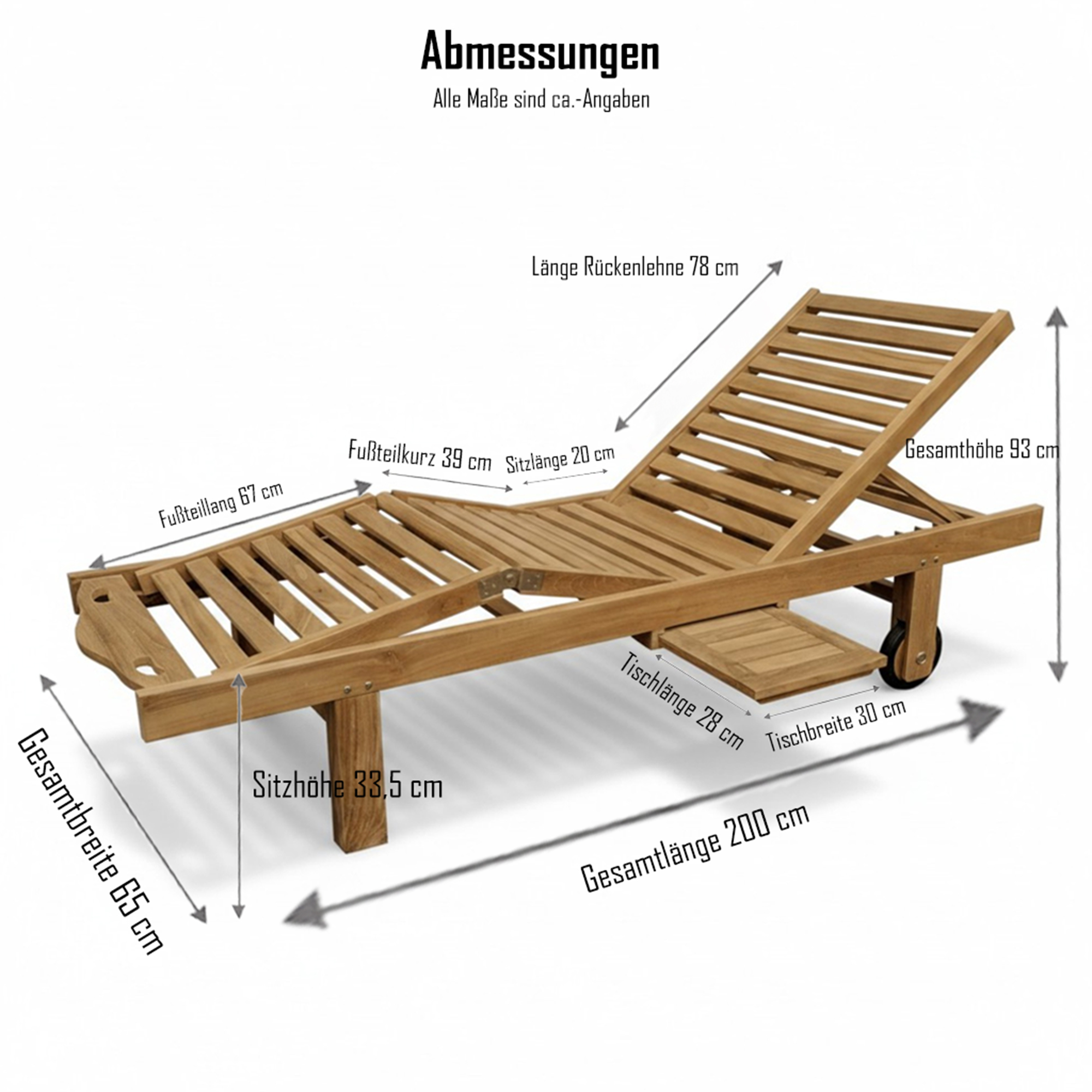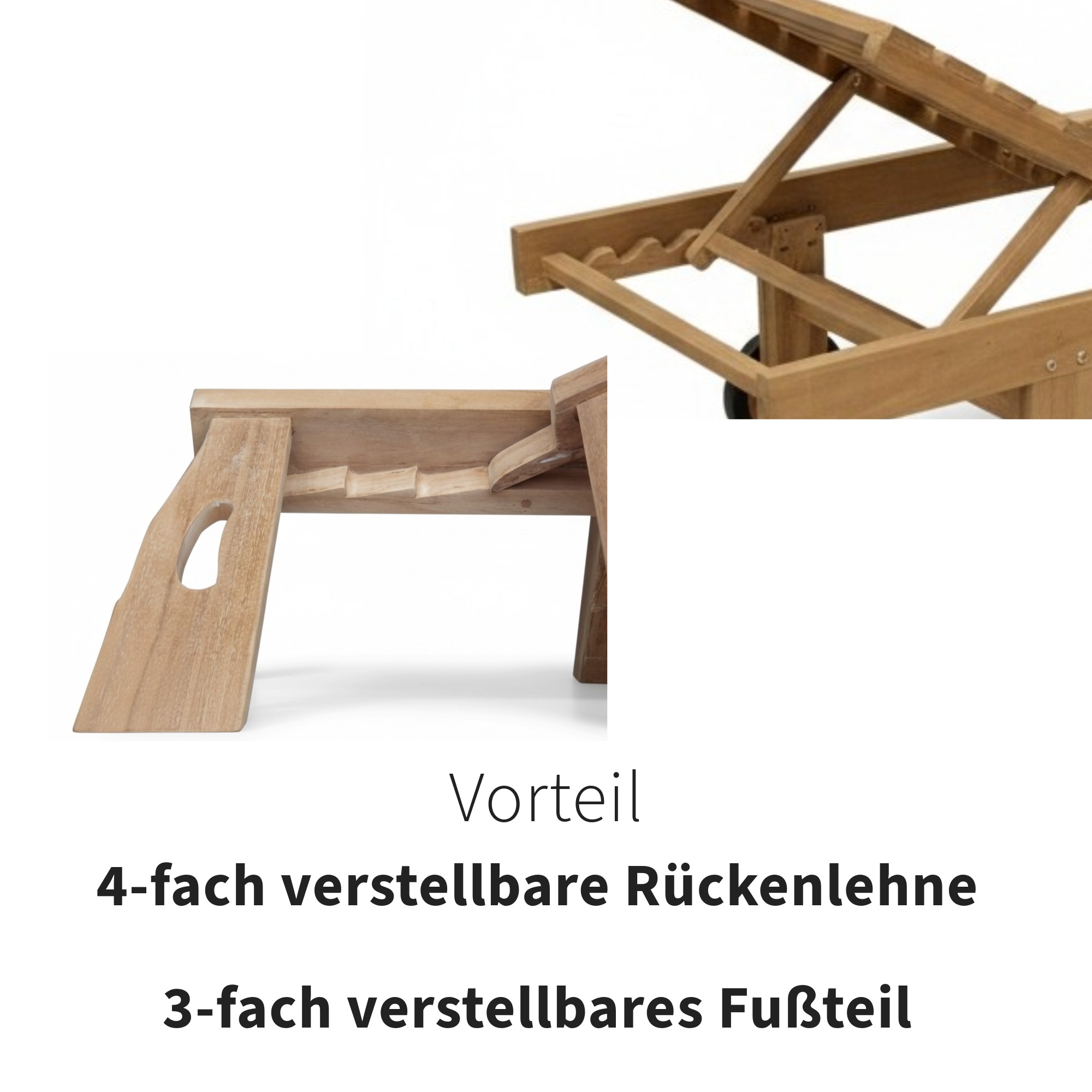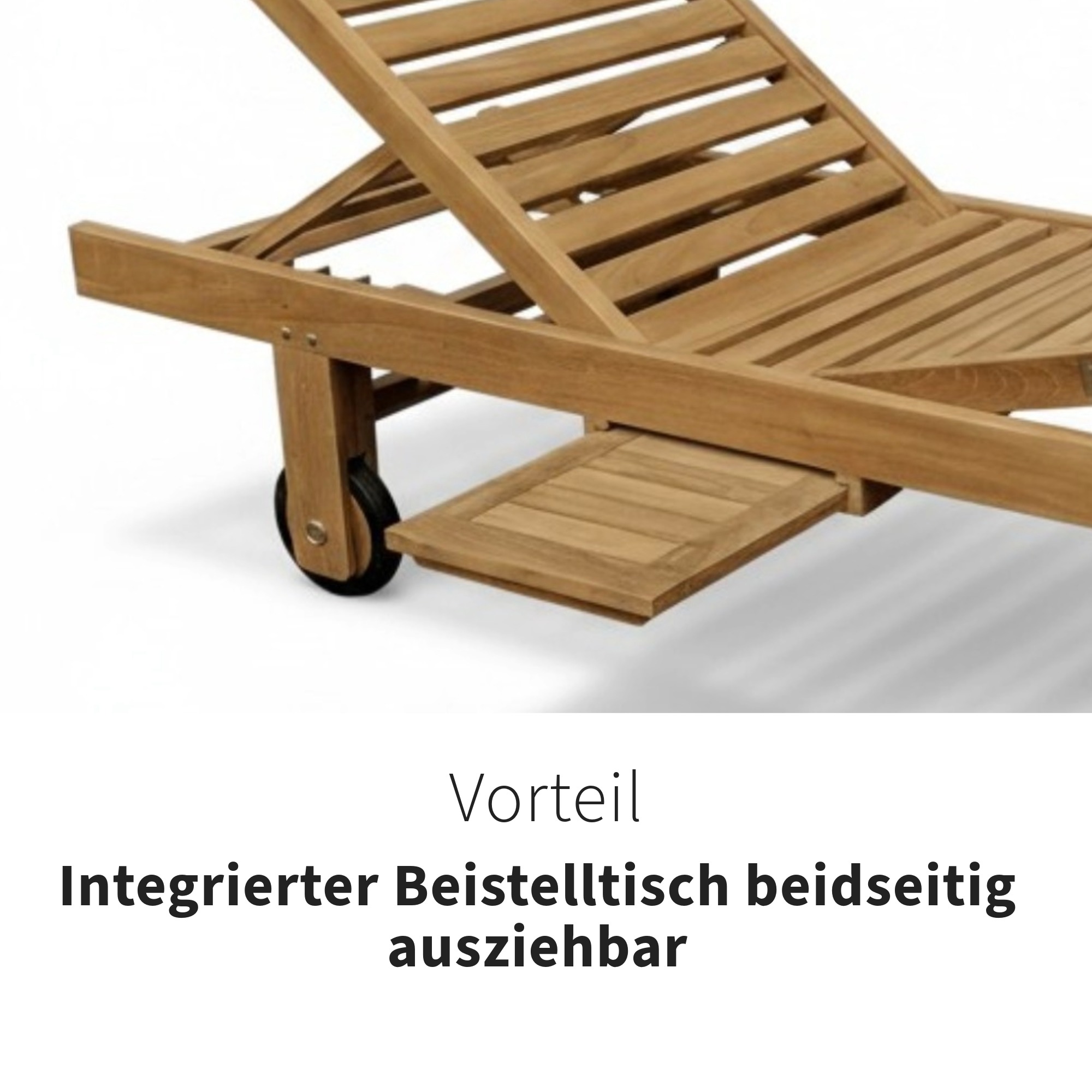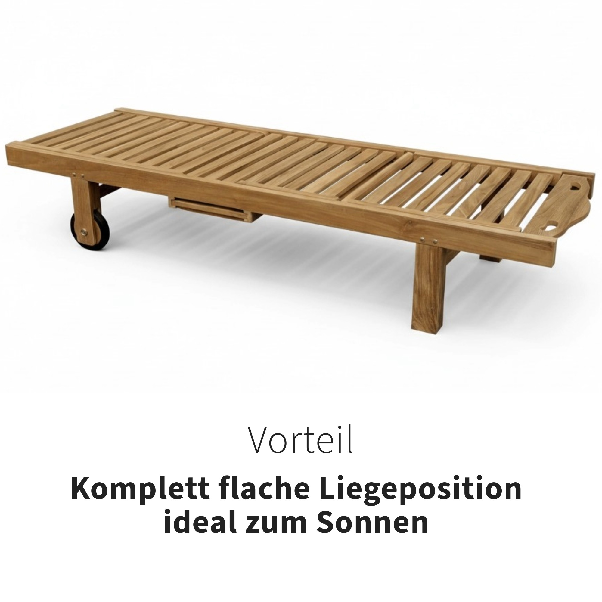 Produktinformationen "Gartenliege aus Teak – Serie Starnberg – mit Abstelltisch & Rollen, 200 cm"
