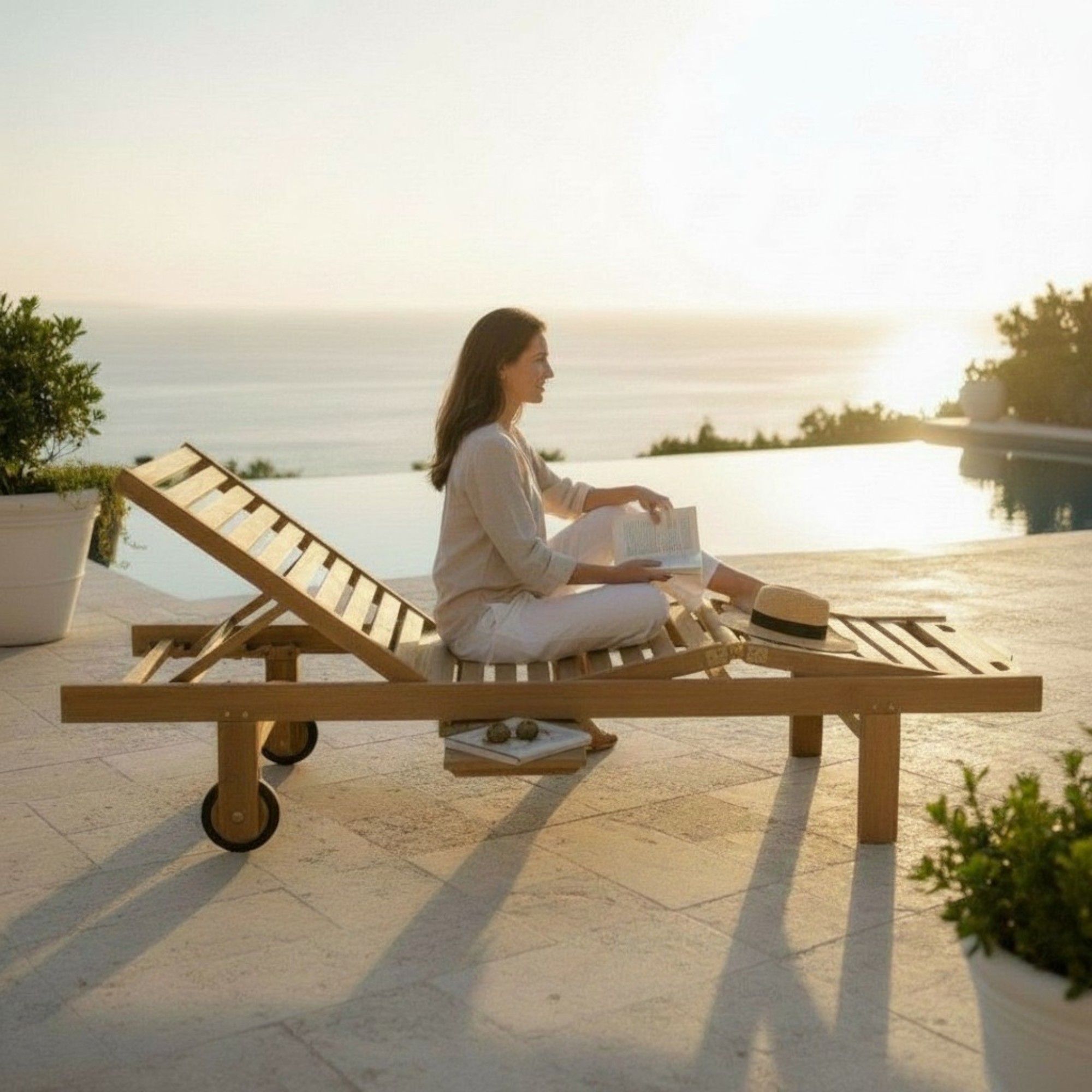 Mit ihrem zeitlosen Design fügt sich die Gartenliege "Starnberg" harmonisch in jede Außenumgebung ein und kann perfekt mit weiteren Teakholz-Gartenmöbeln kombiniert werden. Ob am Pool, auf der Terrasse oder im Garten, sie bietet höchsten Komfort für erholsame Stunden im Freien.