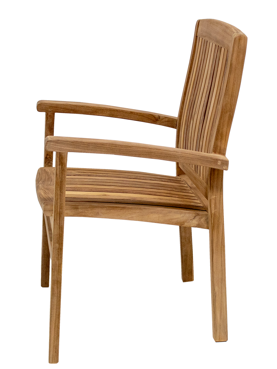 Das massive Teakholz macht diesen Stuhl besonders widerstandsfähig gegen Witterungseinflüsse wie Sonne, Regen und Frost. Dank der natürlichen Öle des Holzes bleibt es dauerhaft robust und erhält mit der Zeit eine edle Patina. Die fein geschliffene Oberfläche sorgt für ein angenehmes Sitzgefühl, auch ohne zusätzliche Polster.