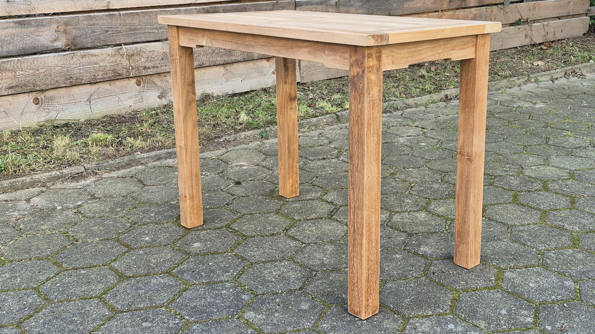 Produktinformationen "Gartentisch aus Teak – Serie München – 100 x 55 cm mit 6 x 6 cm Tischbeinen"