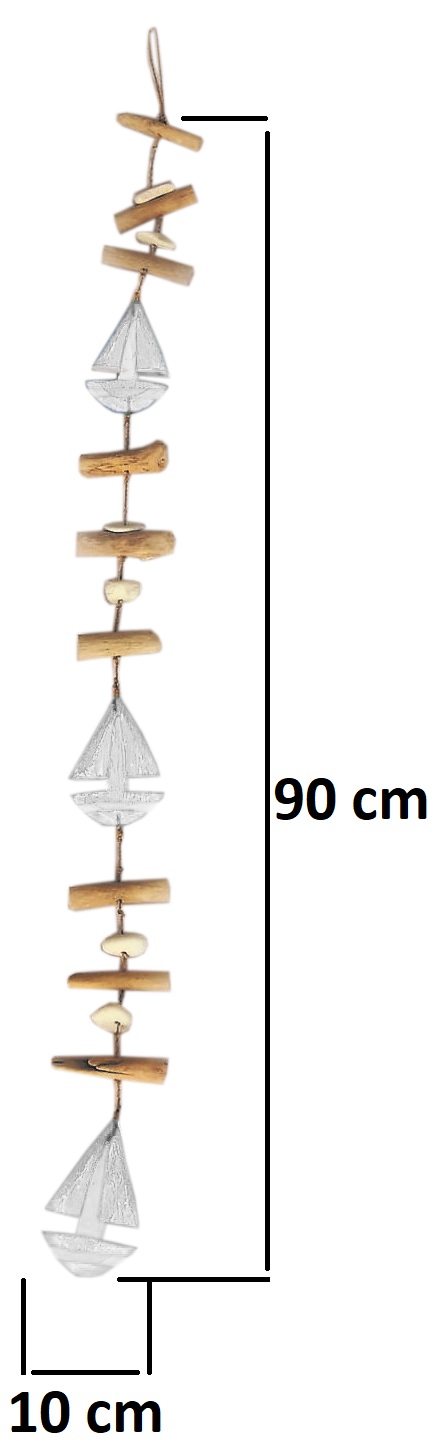 Willkommen bei Teaktrend, wo wir das maritime Flair mit einem herzlichen Gruß verbinden! Unsere Treibholzkette mit drei Segelbooten und Strandgut ist eine charmante Ergänzung für Ihre Wohnräume und verleiht Ihrem Zuhause einen Hauch von Küstencharme.