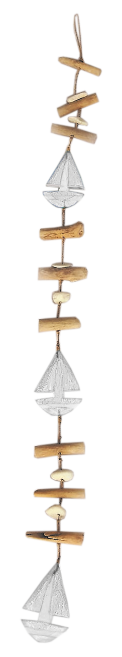 Bringen Sie mit unserer Treibholzkette mit drei Segelbooten und Strandgut das Gefühl von Strand und Meer direkt in Ihr Zuhause und lassen Sie sich von der Schönheit der Küste inspirieren!